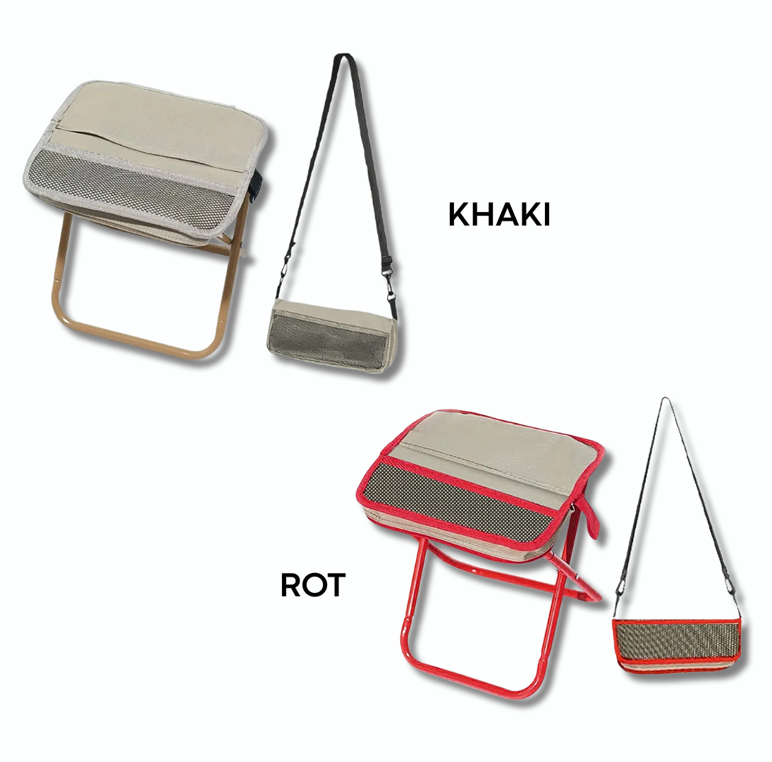 Ein faltbarer Hocker, der so kompakt und elegant ist, dass du ihn wie eine stylische Umhängetasche tragen kannst.