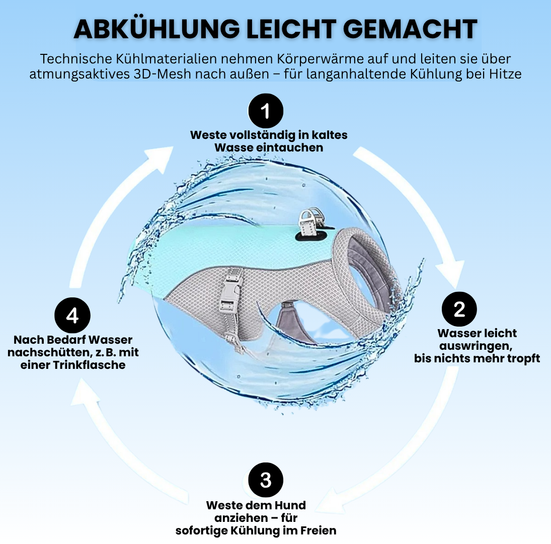 Sie ist eine funktionale Schutzmaßnahme für dein Tier. Sie verbindet wissenschaftlich basierte Kühltechnologie mit Alltagstauglichkeit und Komfort. Ideal für alle Hundebesitzer, die auch bei Hitze nicht auf Bewegung verzichten möchten – ohne Kompromisse bei der Sicherheit.