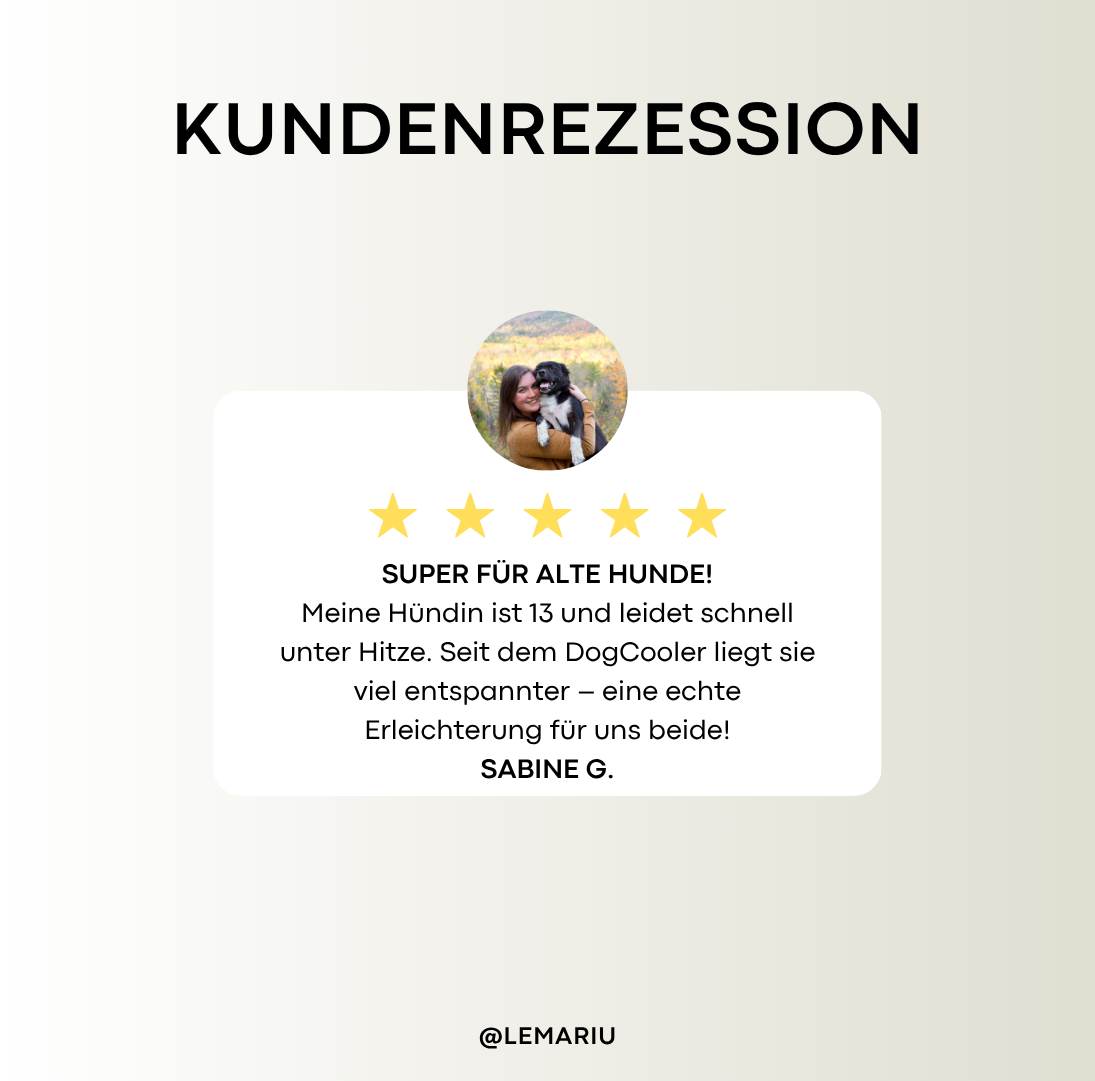 Ich war erst skeptisch, aber der DogCooler funktioniert wirklich! Ben liegt bei Hitze nur noch auf der Matte – weniger Hecheln, mehr Entspannung. Kein Aufwand, sofort kühl. Super für zu Hause und unterwegs!