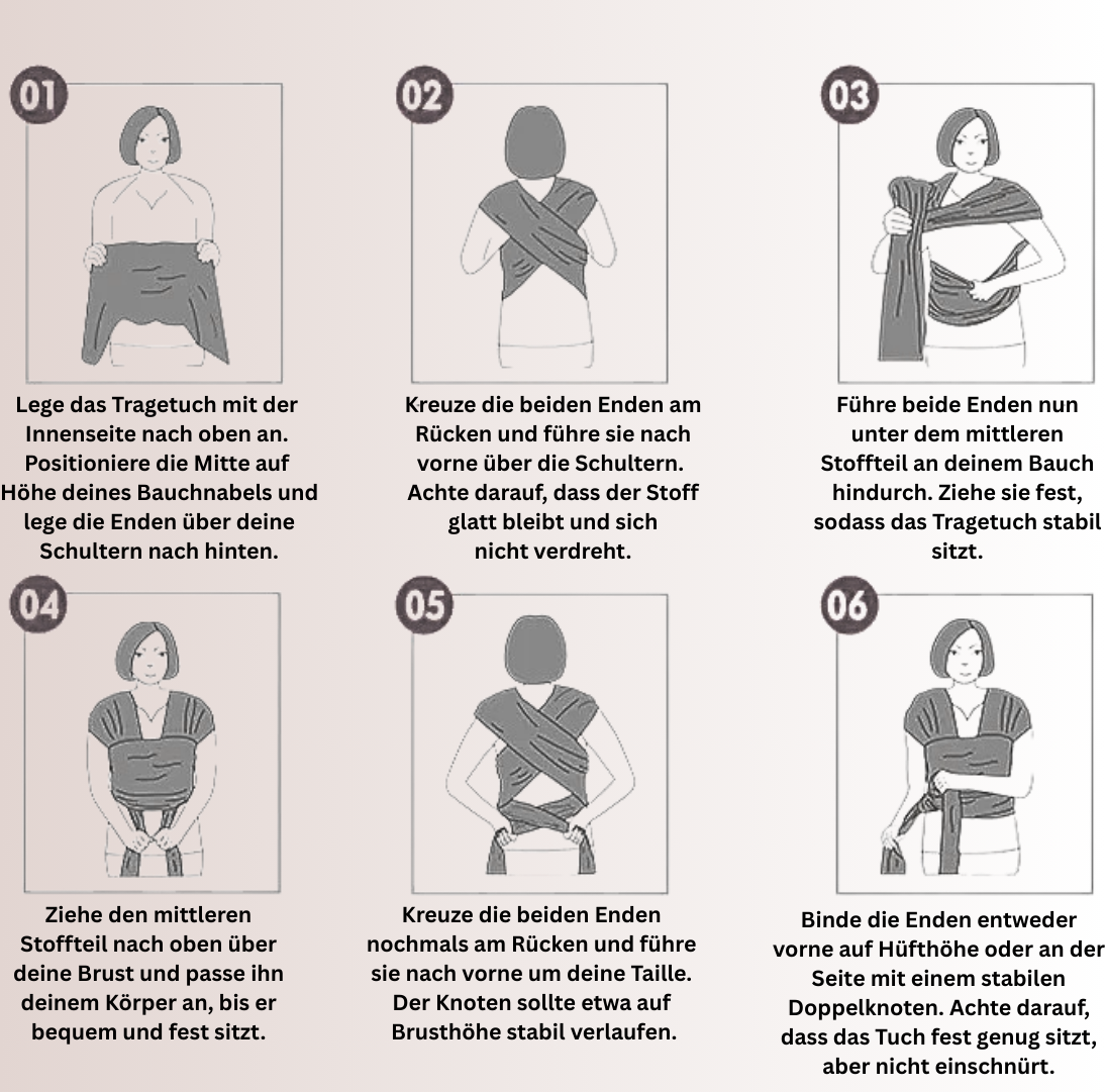 Endlich ein Tragetuch, das sich leicht binden lässt und super sitzt. Mein Baby schläft sofort ein – und mein Rücken dankt es mir!