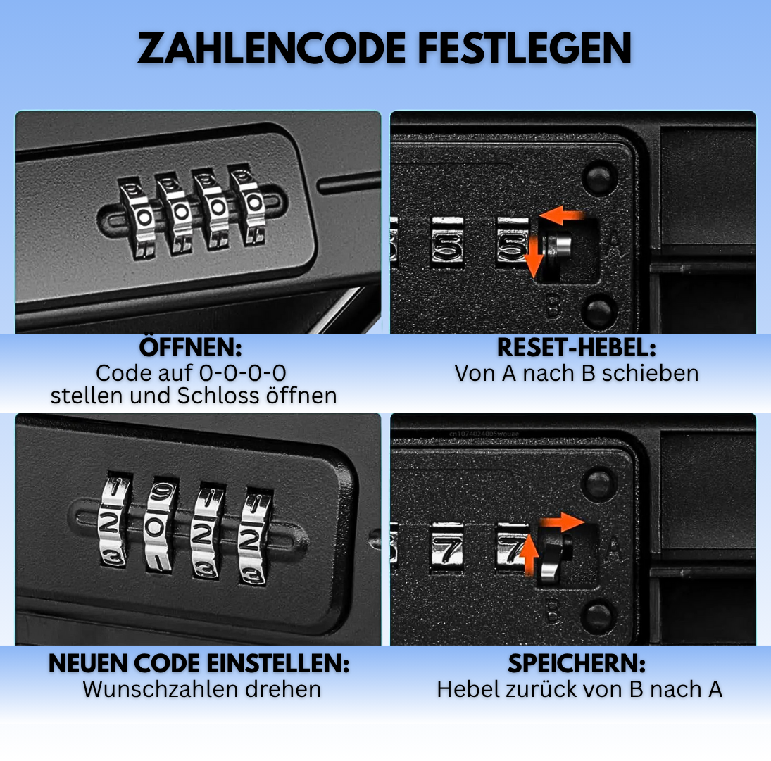 ✔️ 4-stelliges Zahlschloss & Stahlseil